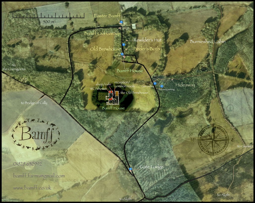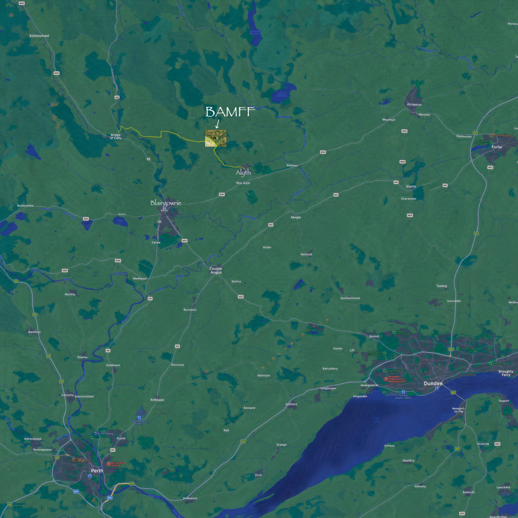 Google maps accurately navigates people to Bamff, but sometimes older fashioned GPS systems have led some astray, so here are more precise directions: